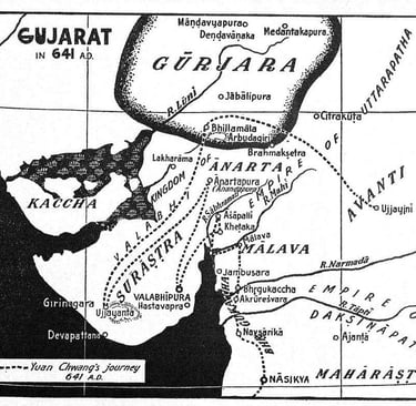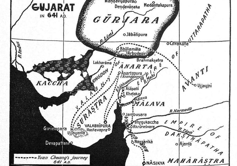 Cultural crossroads: Gurjaradesha stood between Sindh, Lata (southern Gujarat), and Malwa. It was frequently mentioned in ancient texts and foreign accounts, such as by the Chinese pilgrim Xuanzang (Hiuen Tsang) who noted the city of Bhinmal in Gurjara country.